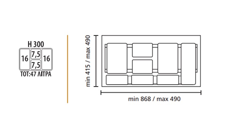 * Δύο δοχεία χωρητικότητας 7.5LT & δύο δοχεία 16LT